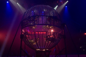 Der „Splitting Globe“ der Diorios ist die spektakuläre Pausennummer. Begeistert gehen die Zuschauer mit, wenn zwei, drei und vier Fahrer auf ihren Maschinen in verwegener Manier durch die enge Stahlgitterkugel rasen. Besonders effektvoll und lauthals bejubelt wird der Schlusstrick, zudem sechs Fahrer – vier oben und zwei unten – im sich öffnenden Globe ihre Bahnen ziehen.