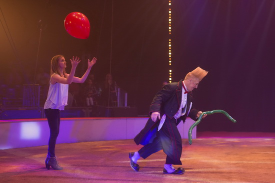 Clown Bello Nock ist das omnipräsente Gesicht dieser Show. Er erobert mit seinen abwechslungsreichen Auftritten, seiner fröhlichen Ausstrahlung und der offenen Art auf das Publikum zu zu gehen die Herzen im Sturm. Er beherrscht die unterschiedlichsten Facetten des komischen Fachs und ist in seinem ambitionierten Auftreten authentisch und die Aktionen wirken nie aufgesetzt – ein wahrer Könner. Im ersten Auftritt entsteigt Bello Nock einem großen Stoffwürfel und wirbelt in einem überdimensionalen, luftgefüllten Kostüm zu einem French Cancan durch die Manege. Pantomimisch geht es zu, wenn sich ein Koffer partout nicht vom Fleck bewegen lässt bis eine Wolke kleiner roter herzförmiger Luftballons daraus entweicht und in Richtung Kuppel emporsteigt. Mit einem in seine Einzelteile zerfallenden und „falsch“ wieder zusammengesetzten Fahrrad persifliert Bello Nock die vorangegangene Fahrrad-Darbietung. Akrobatisch geprägt sind die Auftritte auf dem Todesrad und am Trampolin. Außer vielseitigen Slapstick Gags und feiner Komik wird auch umfangreiches artistisches Können geboten. Vielfältige Kaskaden auf und um das Trampolin, sowie ein Salto im Kessel des Todesrades, Aufgang an einem Arm und freie Flüge über dem Rad gehören beispielsweise dazu. Die turbulente Kunstschützen-Reprise mit einer Assistentin aus dem Publikum, wird mit einem imaginären Pfeil und einem Bogen aus einem Ballon in flottem Ablauf und mit etlichen vorzeitig zerstörten Luftballons, schwungvoll gespielt und kommt bei den Zuschauern bestens an.