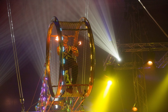 Vor der Pause erleben wir mit dem Duo Valdemar am Todesrad Spannung und Nervenkitzel. Es ist eine der wenigen Todesrad-Darbietungen mit einem weiblichen Partner und nach unserer Meinung die Frau, die außen auf dem Kessel läuft in Europa. Zahlreiche Aktionen in den Kesseln, Fackeljonglage, Blindlauf des weiblichen Partners außen, Seil springen und hohe Absprünge sind die Eckpunkte der Darbietung, die mit einem Salto vom Rad in die Manege ihren Abschluss findet.