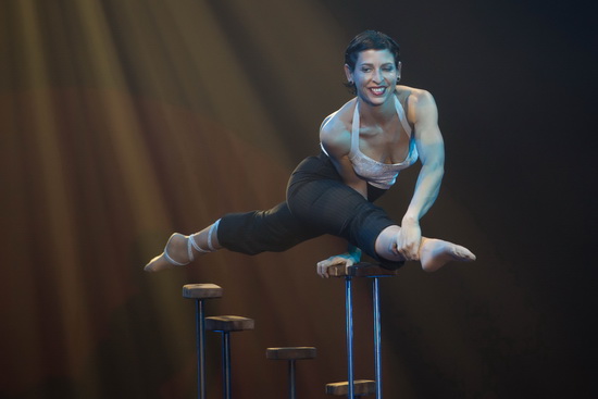 Die französische Artistin Nanou präsentiert ihre Handstandequilibristik zu schwermütigen Tangoklängen aus der Konserve. In ruhigem Adagiostil werden die gängigen Figuren des Genres sicher ausgeführt. Als besondere Note werden die beiden Handstäbe zwei Mal mit weiteren aufgesteckten Elementen verlängert, so dass die Artistin ihre Tricks in immer größerer Höhe arbeitet.
