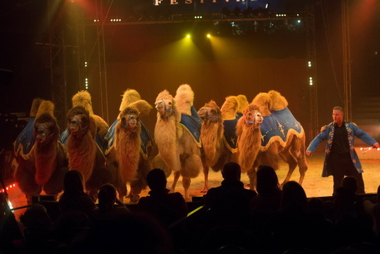 Im weiteren Verlauf der Show sehen wir den Juniorchef des Circus Belly-Wien mit den Exoten des Hauses. Sechs Steppenkamele, deren blaue Schabracken mit dem Kostüm des Vorführers in idealer Weise korrespondieren, bieten ein umfangreiches Repertoire. Ein Ungarisches Steppenrind und Schottisches Hochlandrind gestalten zusammen mit einem sprunggewaltigen Lama das Da Capo des Auftritts.