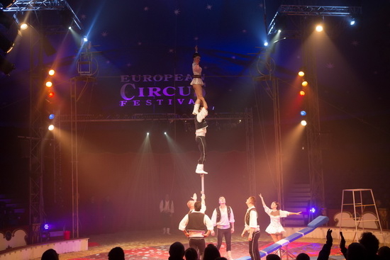 Die Truppe Dolly Cretu bietet mitreißende Schleuderbrett-Akrobatik. Die acht rumänischen ArtistenInnen arbeiten eine trickstarke Darbietung in traditionellem Stil und mit der typischen Begleitmusik.