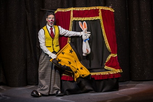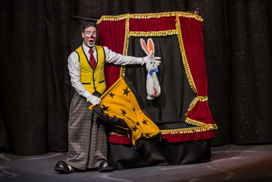 Clown Marco Mariani spielt auf dem Saxophon und dirigiert den Applaus. In einer weiteren Reprise agiert der Clown auf einer Art Puppenbühne. Kaum zeigt sich der Clown darauf, scheinen seine Gliedmaßen enorm zu wachsen. Auch die Vermehrung von (Stoff) Hasen gelingt auf magische Weise und schließlich tanzt er, magisch „geschrumpft“. Natürlich erleben wir ihn auch mit seinem Box-Entrée mit fünf Mitspielern aus dem Publikum.