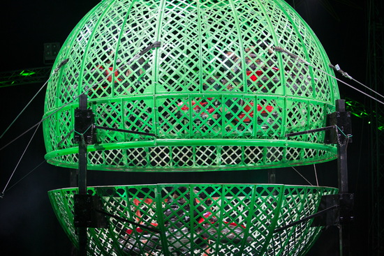 Vor der Pause wird es noch einmal spektakulär. Im Globe of Death sorgt das Team Nogeira für Adrenalin und feuchte Hände auf den Rängen. In hohem Tempo jagen die verwegenen Piloten auf ihren Maschinen durch die enge Kugel, wobei sich ihre Bahnen oftmals kreuzen. Schließlich sind vier Fahrer unterwegs und sich, zum großen Erstaunen vieler Besucher, die Kugel in der Horizontalen öffnet und in zwei Hälften teilt.