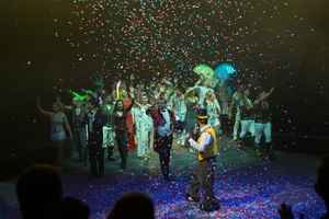 Natürlich mündet auch diese Show in ein großes Finale mit allen Mitwirkenden und nach einigen Vorhängen und Einzelvorstellung aller Nummern rieselt Konfetti in den Landesfarben Luxemburgs auf das Ensemble, das vom begeisterten Publikum mit Standing Ovations gefeiert wird.