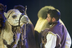 Ihr Manegendebut hatten im Weihnachtsgastspiel sechs junge Dromedare, die Anthony Renz in flottem Ablauf präsentiert. Die vielseitigen Abläufe werden erstklassig ausgeführt und lassen die noch geringe Routine der Tiere nicht erkennen. Auch anspruchsvolle Figuren, wie z.B. fächerförmiges kreuzen im Gegenlauf gelingen erstklassig. Schließlich drehen sich drei Dromedare auf Tonneaus entgegengesetzt zu den drei Tieren die diese umrunden.