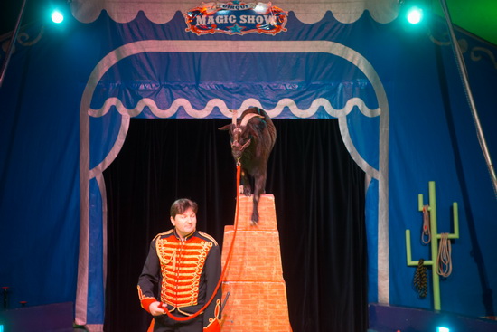 In weiteren Auftritten mit tierischer Beteiligung erklimmt eine Ziege Stufe für Stufe eines Turmes aus immer kleineren Podesten, die nach und nach hinzugefügt werden.