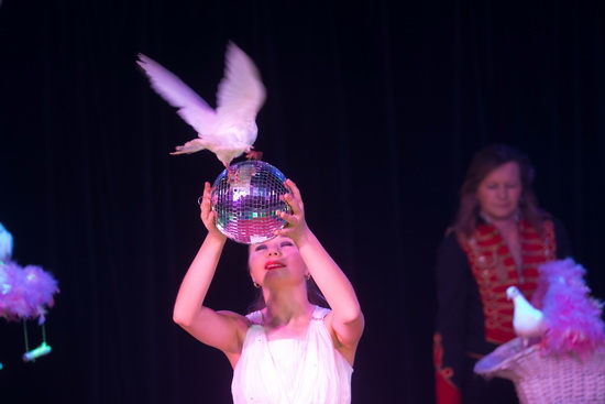 Mademoiselle Tizia präsentiert eine stimmungsvoll verkaufte Taubenrevue. Ihre gefiederten Manegenpartner beherrschen eine Reihe der genretypischen Tricks. Sie laufen eine Leiter hoch, laufen auf einer Spiegelkugel und auf einem Schirm und fahren abschließend Karussell.
