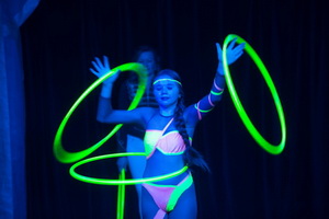 Noch einmal sehen wir Mademoiselle Tizia, die ihre variantenreichen Hula Hoop-Spiele im Schwarzlicht präsentiert. Ruhig und sicher arbeitet das junge Mädchen eine Reihe der genreüblichen Abläufe.
