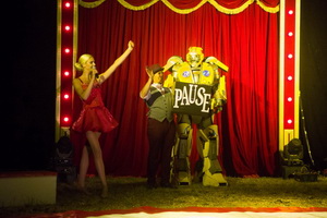 Variantenreich seine Jonglage mit Tischtennisbällen. Mittels Schläger finden sie den Weg in ein Gestell auf seinem Kopf, auch die Jonglage mit dem Mund beherrscht er sicher. Abschließend platziert er sie mit dem Mund auf einer Flaschenorgel und lässt Beethovens "Ode an die Freude" erklingen. Mit dem Transformer geht es in die Pause. Der Clown hat zunächst ein Modellauto, das sich in eine Transformerfigur verwandelt, dann erscheint eine riesiger Transformer in der Manege und die Besucher haben die Gelegenheit, sich mit dieser zu fotografieren. Im einzigen Auftritt mit Zuschauerbeteiligung wird ein Paar von Jonny Popey kurzerhand miteinander verheiratet.