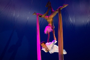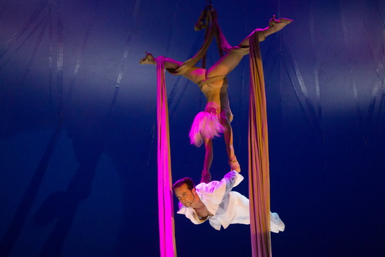 Das abschließende Highlight der Spielfolge bietet das Duo Olivares mit seinem Partner-Act an den Strapaten. Die attraktive Abfolge der Partner- und Solotricks sind in eine stringent erzählte Liebesgeschichte eingebunden, in deren Ablauf der weibliche Teil des Duo die Rolle des Porteurs einnimmt.