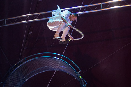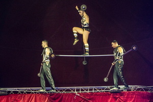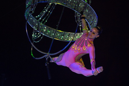 Akrobatik am Kronleuchter ist das Metier von Miss Aurelie. In erstklassiger Weise gelingt mit dieser stimmungsvoll vorgetragenen Kür der Einstieg in die Nummernfolge. Viele attraktive Tricks werden gekonnt dargeboten.
