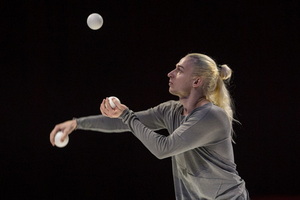Jongleur Dima Bakhtin arbeitet mit kleinen weißen Bällen. Bis zu acht werden in facettenreicher Weise in Perfektion manipuliert, wobei die Abläufe und Muster sich erheblich vom ansonsten gewohnten unterscheiden. Der Jongleur wirkt in seinem Stil und Aussehen dem „Nouveau Cirque“ verbunden und bleibt, bei allem Können ein Fremdkörper in dieser Show.