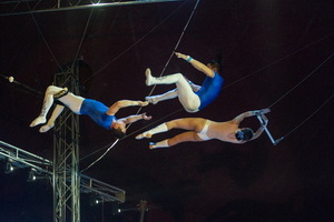 Die Truppe „Flying Milla“ zeigt ihr Können am Fliegenden Trapez vor der Pause. Zu dritt bieten sie ein breites Spektrum gängiger Tricks, die vom Publikum mit lebhaften Äußerungen quittiert werden. Mit einer spektakulären Passage endet der Auftritt effektvoll.