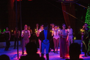 Komiker „Mr. Gerald“ erobert vom Haupteingang aus die Manege. Nachdem er zwei lose Kabelenden verbunden hat, leuchten die Lichter im Zelt auf und die Show kann beginnen. Das Ballett kommt zu seinem ersten Auftritt und Ringmaster David Paschke heißt „herzlich willkommen“ und gibt die Manege für die Show frei.