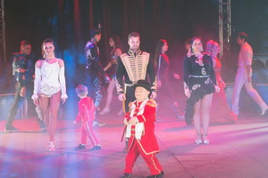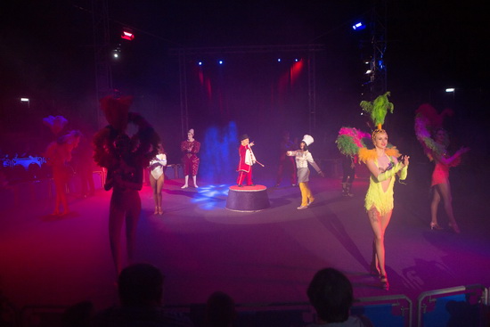 Die vier Tänzerinnen des ukrainischen Balletts starten die temperamentvoll die Show in üppigen Kostümen a la „Karneval in Rio“, während der kleinwüchsige Moderator Roland Hofer - „der kleinste Moderator der Welt“ - eloquent mit sonorer Stimme das „hochverehrte Publikum“ willkommen heißt. Das Artisten-Ensemble gibt derweil Kostproben seines Könnens.