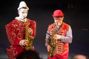 Großen Anteil an der gelungenen Show haben die Tony Tonito Clowns. Mit pointiertem Spiel präsentieren sie ihre vielseitigen Auftritte. Beim Versuch eine Flasche auf einem Stab zu balancieren wird Tony Tonito vom zweiten August übertöpelt. Solo sehen wir ihn mit Popcorn hantieren und mit zwei Zuschauern wird „Motorrad“ gefahren. Stimmungsvolles musizieren auf Saxophonen überbrückt einen Umbau und mit viel Temperament geht es am Trampolin zur Sache. In bekannter Weise bietet Tony Tonito Kaskaden am Sprungturm sowie Saltos und Pirouetten auf dem elastischen Tuch. Schließlich versucht sich der Clown als Dompteur, doch sein prächtiges, eigenwilliges (Kostüm)-Kamel zeigt sich nicht sehr folgsam.