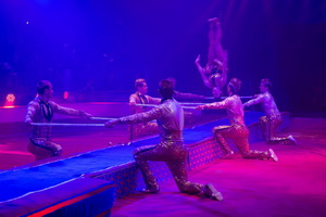 Die erste Darbietung der "Show B" bestreiten die acht Mitglieder der Casablanca Troupe. Marokkanische Springer sind heute nur noch selten in den Manegen zu erleben und so kommen sie beim Publikum sehr gut an. Die Akrobaten bieten eine Vielzahl an Pyramiden und wirbeln, die verschiedensten Salti und Flickflacks schlagend, durch die Manege. Eindrucksvoll beweist Untermann Sahid abschließend seine Kraft, indem er seine sieben Kameraden auf seinen Schultern trägt.