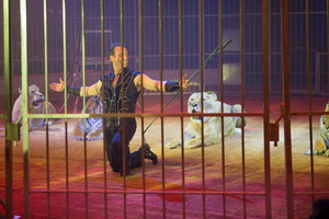 Steve Caplot, Juniorchef des Cirque Lydia Zavatta, präsentiert in temperamentvoller Weise drei Löweninnen und zwei Tiger in der Gittermanege. Ein umfassendes Repertoire gängiger Tricks des Genres wird mit einem Sprung über eine Feuerbarriere ergänzt. Viele geschickt forcierte Scheinangriffe werden von einer Löwin mit großem Schwung ausgeführt und lassen den Dompteur effektvoll immer wieder bis an die Gitter zurückweichen.