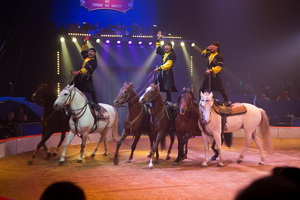 Die Tscherkessenreiterei der Truppe Tamikov bieten eine Reihe hervorragender rasant gearbeiteter Tricks. Einleitend sind drei Stehendreiter ähnlich einer Post manegenfüllend unterwegs. Einer von ihnen riskiert auch Barrierensprünge. Starke Tricks werden in großer Anzahl geboten, so u. a. das unterqueren des Pferdes im Galopp, Zwei-Mann-Hoch mit Fahne und mit fünf Reitern auf zwei Pferden im Drei-Mann-Hoch.