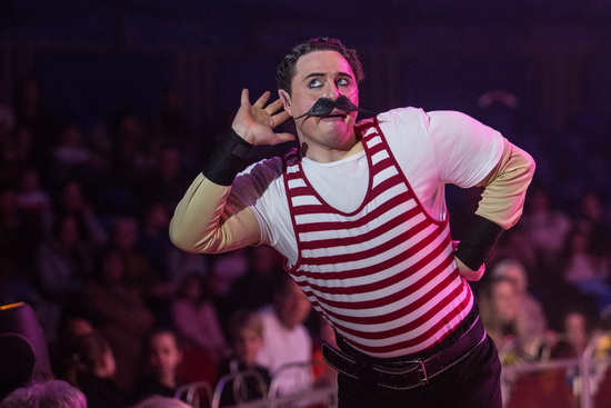 Clown Jason Medini verbreitet in zwei Reprisen Frohsinn. Zunächst erleben wir ihn im Gehabe eines „alten Kameraden“ am Schleuderbrett. Ein Besucher soll mitmachen, doch... nun der Ausgang ist bekannt. Später liefert er sich – mit einem sehr aufgeweckten – Jungen aus dem Publikum einen Wettstreit im Wasser spucken, der in ein Duell mündet.
