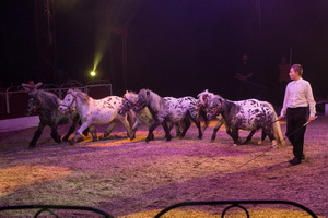 Der ältere der beiden Söhne von Franz Renz jr., Alexandro, ist mit sechs Tigerscheck-Ponys zu erleben. Sicher und selbstständig dirigiert der Nachwuchs-Tierlehrer den Ablauf.