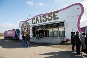 Der umfangreiche Fuhrpark, ausnahmslos Sattelzüge mit zugehörigem großen Anhänger, ist rings um die Zelte abgestellt. Campings sind nur sehr wenige zu sehen, da die meisten Artisten in den Abteilen der Mannschaftsunterkünfte untergebracht sind.
