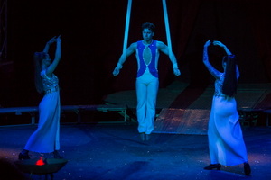 Wenig später sehen wir die beiden Artistinnen mit einer Kür an einem Luftapparat.