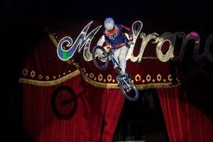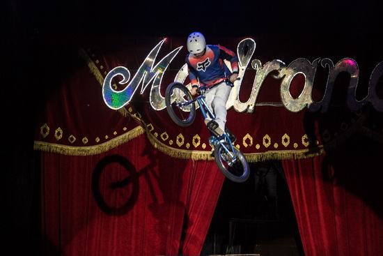 Der zweite Teil startet mit BMX-Akrobatik. Vier Fahrern vollführen waghalsige Sprünge mit ihren Fahrrädern vollführen in zwei großen, hintereinander stehenden Halfpipes. Die hintere reicht bis hinter den Vorhang und von ihrer erhöhten Plattform beginnt der Anlauf zu den riskanten Manövern, die in der zweiten Pipe gelandet werden. Bei dieser Nummer haben die Besucher der Mittellogen und große Teile des mittleren Gradinblocks schlechte Karten – die mehrere Meter breite und hohe Rampe aus Metall und Holz steht unmittelbar vorn an der Piste und deckt das Geschehen völlig ab.
