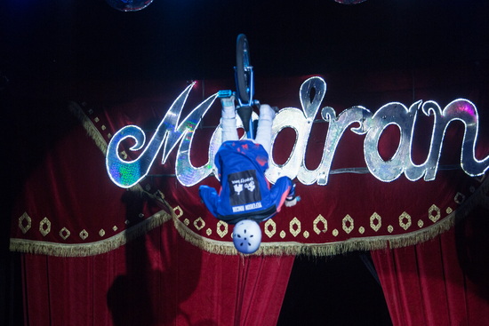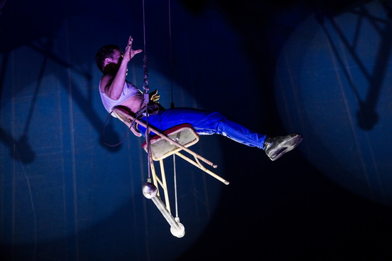 Der anschließende Act eines jungen Mannes an den Strapaten bleibt unseren Augen leider weitgehend verborgen, da er von der Lichtanlage hervorragend abgeschirmt wird.