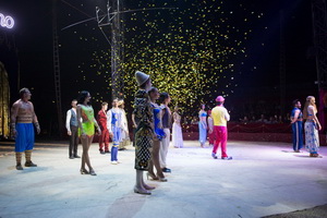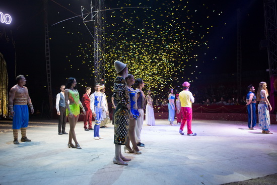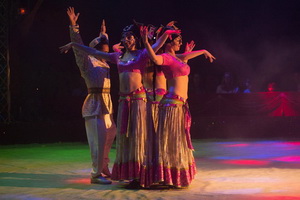 Mit großen orientalischen Schaubildern wird das Motto der Show belebt. Sängerin Mary und ihr Kollege Noel, beide stammen ausTansania, sowie fünf TänzerInnen des Balletts erfahren des Öfteren Unterstützung durch die Clowns.