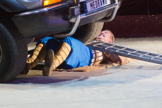 Als Finalnummer erleben wir Dennis Llenchenkov mit seinem Act des „starken Mannes“ Der hünenhafte Artist kommt mit einem etwa vier Meter langen und etwa dreißig Zentimeter Durchmesser messenden massiven Holzstamm auf den Schultern in die Manege. Vier Ballettmitglieder hängen sich an den Stamm, bzw. sitzen in Gurtschlaufen während Llenchenkov mit seiner Muskelkraft das „Karussell“ in Gang setzt. Nach diesem Auftakt zieht er einen schweren Geländewagen nur mit der Kraft seiner Zähnen quer durch die Manege. Zum Höhepunkt der Darbietung lässt sich Llenchenkov von dem Geländewagen überrollen. Auf dem Rücken liegend hält er dem Druck des rund zwei Tonnen wiegenden Fahrzeuges stand, dass mit zwei Rädern über die auf seiner Brust ruhenden Metallrampen fährt.