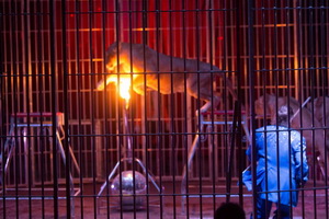 Ein im französischen Circus allgegenwärtiger „Monsieur Loyal“ begrüßt wortgewandt mit sonorer Stimme das zahlreich erschienene Publikum, dann startet die Spielfolge mit einer Raubtierdressur.