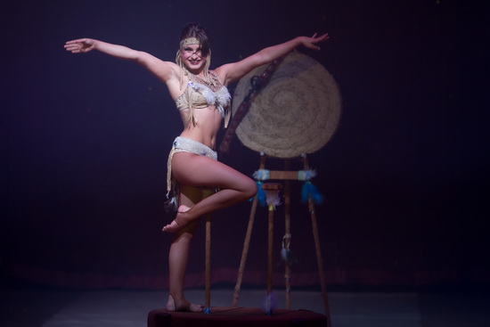 Princess Pocahontas, alias Melany Dalton arbeitet eine anmutige Handstandequilibristik im Indianer-Look. Die elegant und kraftvoll ausgeführten Handstandtricks finden in einer Reihe Kontorsions-Elemente eine gelungene Ergänzung und ein mit den Füßen ausgeführter Pfeilschuß beendet die Darbietung.