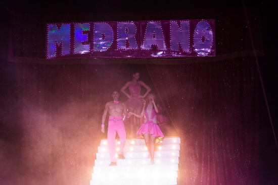 Im großen Finale wird das Thema „Las Vegas“ noch einmal eindrucksvoll visualisiert. Ballett und Sängerin sorgen für den passenden Rahmen, derweil die Artisten die Showtreppe hinab, und noch einmal namentlich vorgestellt, in die Manege kommen. Wie stets mündet das Medrano-Finale in eine schwungvolle Choreographie und mit donnerndem Applaus verabschiedet das begeisterte Publikum die Akteure.
