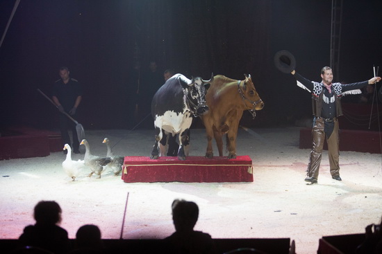 Nach einem kurzen Opening, das Clown Eduardo Romero auf der Mundharmonika gestaltet, beginnt die Show, wie in französischen Circussen zumeist praktiziert, mit einer Raubtierdressur.