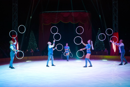 Temperamentvoll beginnt die höchst unterhaltsame Show mit der Gruppenjonglage der Truppe Lanik. Die ersten Touren erfolgen mit weißen Ringen. Gekonnt formen sich die verschiedenen Muster, dann werden die Requisiten gewechselt und die folgenden Routinen werden mit Keulen ausgeführt. Variantenreiche Formationen der Truppe ermöglichen interessante Muster. Effektvoll gelingt der Abschluss der Darbietung mit leuchtenden Keulen im abgedunkelten Zelt.