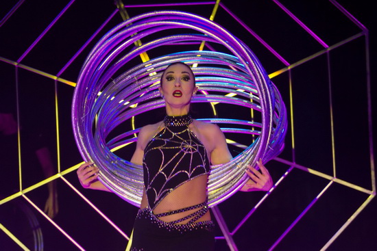 "Spiderwoman" Priscilla Errani startet ihre bekannte Hula Hoop Darbietung von einem großen, silbern glänzenden Spinnennetz aus. Temperamentvoll werden die attraktiven Tricks ausgeführt und durch die aktive Teilnahme ihres Partners Marco Moressi erhält der Auftritt zusätzlichen Drive.