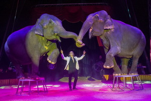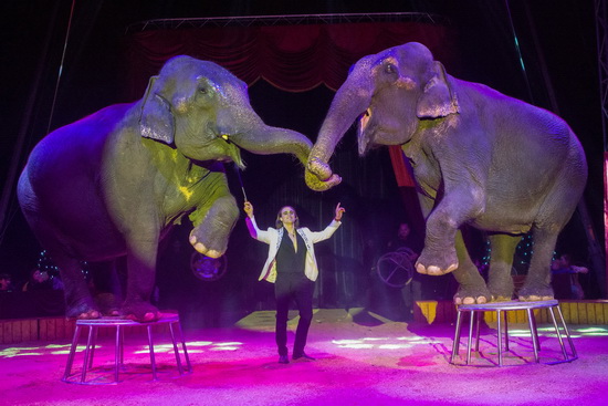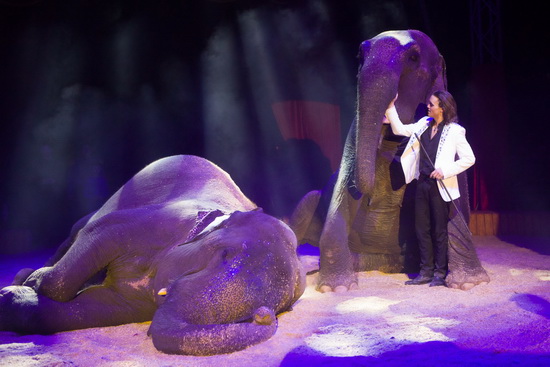 Die beiden Tier-Darbietungen der Show werden von der Familie Folco präsentiert. Zunächst ist es Amedeo jr., der die beiden asiatischen Elefanten „Baby“ und „Sharon“ zu ihren Tricks anleitet. Die Dickhäuter steigen auf Tonneaus, sitzen hoch und zeigen Laufarbeit. Nachdem sie in der Manege abliegen hat ein Zuschauerkind die Chance hautnah mit den Tieren in Kontakt zu treten, indem es die mächtigen Elefantenkühe mit einem Apfel füttert.