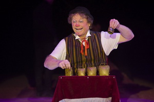 Clown André - André Broger - ist von verschiedenen Engagements hierzulande bestens bekannt. Mit Hingabe verkörpert er eine liebenswerte, "versehentlich"komische Figur die immer wieder an der Tücke des Ojektes scheitert. Da ist zunächst die imaginäre Fliege, die partout nicht zu bändigen ist und sich sogar wieder aus ihrem Grab befreit. Zusammen mit einem Besucher will er einen Drachen steigen lassen. Was sich zunächst gut anlässt, nimmt ein unerwartetes jähes Ende. Zu seinen bekannten und bewährten Szenen gehören der Hai in der Badewanne und das Glocken verteilen. Immer wieder reizvoll zu sehen ist sein Duett mit sich selbst.