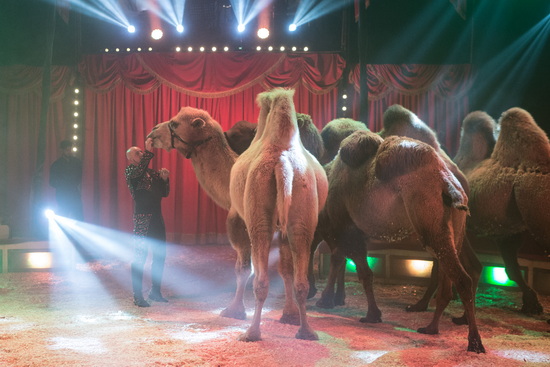 Im zweiten Teil des Programms präsentiert Rudy Althoff vier prächtige Kamele. In aller Gelassenheit absolvieren die Trampeltiere ihr umfangreiches Repertoire.