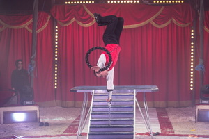 Eine formidable Handstand-Equiliristik, mit vielen heutzutage kaum noch zu sehenden Abläufen präsentiert Giordan Alessandrini. Der sympathische junge Artist läuft und springt eine Treppe im Handstand und Einarmer hinauf und hinab. Er lässt einen Reifen um den freien Arm rotieren, während er, mit einer Hand die Stelze haltend, Stufe um Stufe die Treppe hinaufspringt.