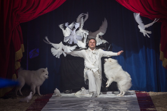 Die zweite Darbietung mit tierischer Beteiligung ist die abwechslungsreiche Tauben-Revue von Andrej Fjodorovs. Die vielseitigen Abläufe sehen optisch sehr unterschiedliche Tauben in Aktion. Zudem sind zwei weiße Spitze in den umfang- und abwechslungsreichen Auftritt integriert.