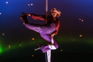 Andrea Navratil zeigt am Vertikalseil eine rasant ablaufende Abfolge vielseitiger Figuren. Besonderen Drive und Nervenkitzel erhält der Auftritt durch die zahlreichen riskanten Abfaller und schließlich lässt sich die Artistin an einem Arm voll ausdrehen.