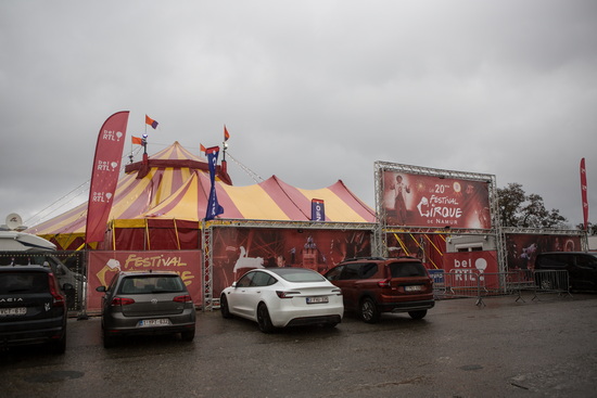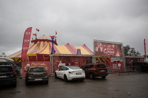 Wie eh und je sind die Zeltanlagen auf dem Circusplatz, auf der „Esplanade de la Citadelle“, hoch über der Stadt aufgebaut. Ein rot-gelb gestreiftes Chapiteau mit sehr hoher spitzer Kuppel ist mit einem dreimastigen Vorzelt im gleichen Dekor kombiniert.