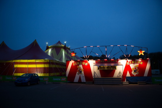 Auf dem Circusplatz sind die Zeltanlagen des englischen Bobby Roberts Circus, der wiederum das technische Equipment des Festivals stellt, aufgebaut. Das gewaltige sechsundvierzig Meter Chapiteau zeigt ein markantes rot-gelbes Blockstreifendesign und ist mittels eines Tunnels mit dem farblich abgestimmten Vorzelt verbunden. Der Kassenauflieger ist in einem rot-weißen Dekor lackiert und mit Leuchtelementen verziert. Einige dunkelblaue Materialtransporter des Roberts Circus sind auf der rechten Platzseite abgestellt, während die linke Seite den Artistenfahrzeugen vorbehalten ist.