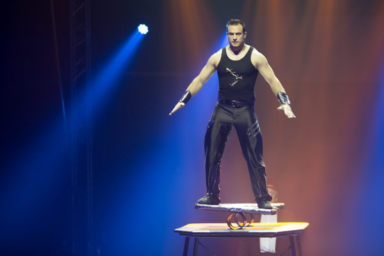 Mit seiner temperamentvollen Arbeit auf der Rola-Rola startet Paolo Kaiser die Nummernfolge. Mit cooler Attitüde reiht er die hochkarätigen Tricks aneinander – springt Seil, stapelt im Sprung weitere Rola-Bretter unter seinen Füßen und springt von einer Rola zu einer weiteren auf einem niedrigeren Piedestal. Höhepunkt der Darbietung ist nach wie vor der Rückwärtssalto von einer zu anderen Rola.