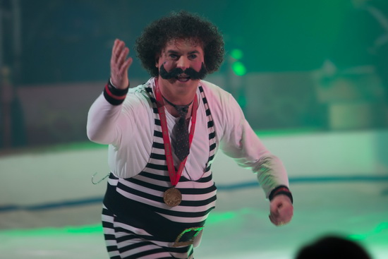 Tragende Figur des diesjährigen Programms und dem zu Folge auch mit dem ersten Preis durch die Publikumsabstimmung ausgezeichnet ist Clown Jimmy Folco. In zahlreichen Reprisen, die allesamt liebevoll ausgestattet und mit Hingabe gespielt werden, zeigt er sein umfangreiches Können. Ein raffiniertes Lichtdesign am Artisteneingang bildet die italienische Flagge (grün, weiß, rot) nach - „ich bin Patriot auch wenn wir im Fußball kein Weltmeister geworden sind“ erfahren wir von Jimmy Folco dazu im Gespräch. Zunächst jongliert er als „starker Mann“ mit Eisenkugeln, jedenfalls so lange bis er von einer am Kopf getroffen ko geht. Die Amor-Szene nimmt die bekannte Wendung und im dritten Auftritt spielt der Clown mit Zuschauern Kopfball mit Luftballons. Immer wieder werden diese von einer gestrengen Stallmeisterin – Ehefrau Claudia – konfisziert, hoch über den Kopf gehalten und zum platzen gebracht, bis sie letztlich eine kalte Dusche nimmt. Schließlich fallen „Häuptling Jimmy“ die Federn aus dem Kopfputz, wenn „Cowboy Claudia“ die Peitsche schwingt. Den umfangreichsten Auftritt beginnt Jimmy Folco mit seiner bekannten Jonglage als Koch mit „Pizzen“. Schnell findet er vier freiwillige Mitspieler das Spiel mit den Tellern nimmt seinen Lauf. Nachdem die ersten Scherben produziert sind, werden die Mitspieler mit schweren Handschuhen und Helmen ausgerüstet und die Teller sollen hin und her geworfen werden. Eine ältere Dame, es handelt sich um die siebenundsiebzigjährige Mutter des Clowns, kommt Dank ihrer perfekt gespielten Unaufmerksamkeit und Ungeschicklichkeit beim Publikum besonders gut an.