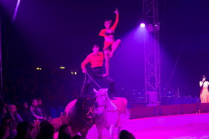 Den Reigen der Darbietungen komplettiert die Donnert Family mit ihren beiden erstklassigen Reiter-Auftritten. Zuerst präsentieren Richard Donnert und seine Schwester Emilia ihr bekanntes Pas-de-Deux, dass von der jungen Frau als Tänzerin im spanischen Stil eingeleitet wird. Fehlerlos werden die klassischen Posen des Genres dargeboten.