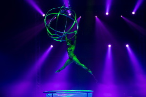 Jana Roberts eröffnet den zweiten Programmteil mit Luftakrobatik an einer Gitterrohrkugel. Die Abläufe entsprechen denen am Ringtrapez und ein Wasserbassin ist gleichfalls in die Darbietung einbezogen.